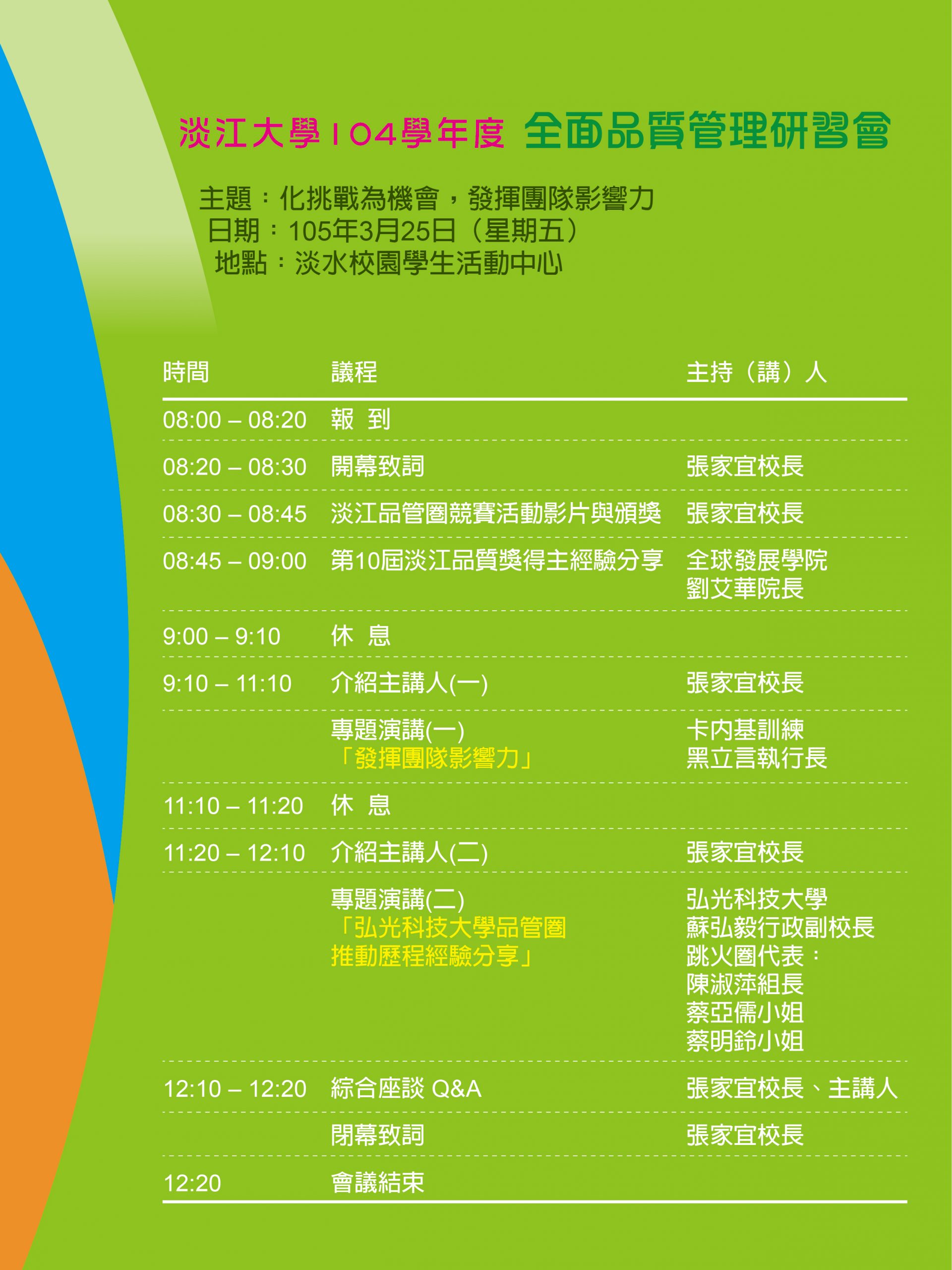 第14屆國家品質獎得主—元智大學全面品質管理經驗分享 |