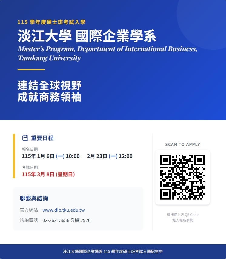 115學年度國際企業學系碩士班考試入學熱烈招生中